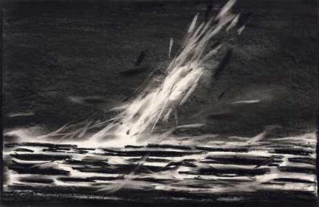 While widely known as a highly acclaimed stage director and playwright, Robert Wilson’s work is firmly rooted in the fine arts. An accomplished draftsman, painter and video maker he is one of the rare artists who works across artistic media without being buoyed by one method of making. In the new series on view, the artist captures on paper ephemeral moments of his latest production. Rendered in subtle tones of black and white, the works range from pure abstraction to a specific sketch of what Wilson envisioned for an act, scene or interlude. Rather than a realistic render of the stage design, they represent energy streams, echoing Wilson’s use of light to define space on stage.