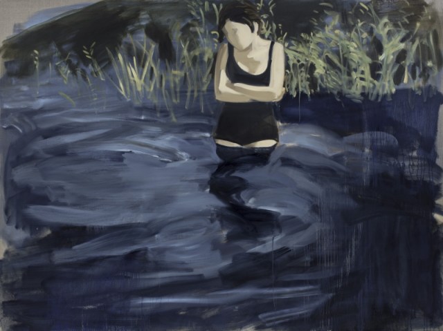 Et pourtant, le nom de l’exposition y fait référence sous le terme d’inconnu. Figures inconnues non pas car on ne les connait pas, mais plutôt car elles ne sont ni identifiées par un titre, ni individualisées. Cet effacement systématique des visages, de ce qui fait une personne, mais aussi de tout jalon temporel et de lieu est au coeur de la démarche artistique de Gideon Rubin depuis 2001. Cette démarche qui confronte ici le spectateur avec un inconnu est aussi celle qui lui permet de développer une intimité avec sa représentation. Intimité du regard qui doit dès lors se faire attentif et prendre le temps d’observer cette image dans les moindres détails d’une coiffure, d’une tenue, d’une posture ou d’une attitude. Cette attention compose ou recompose alors peu à peu une histoire, à partir de son expérience personnelle, de son savoir universel, ou peut-être d’un mélange des deux.