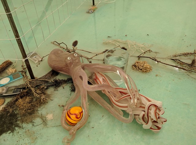 « La pieuvre représente cette connexion animale et physique que l’on a perdue. Nous sommes plusieurs protagonistes dans cette vidéo et les tentacules nous relient les uns aux autres, en mélangeant nos personnalités et nos diverses cultures » -Laure Prouvost