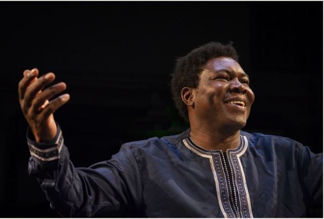 Seul face au public, Etienne Minoungou, avec son sourire lumineux et rayonnant d’humanité, nous livre ce petit bijou de poésie engagée de Felwine Sarr qui s’adresse à la jeunesse africaine mais qui touche directement chacun d’entre nous tant le conteur établit d’emblée, avec beaucoup de douceur, un lien intime avec le public.