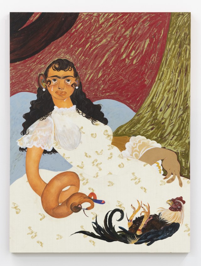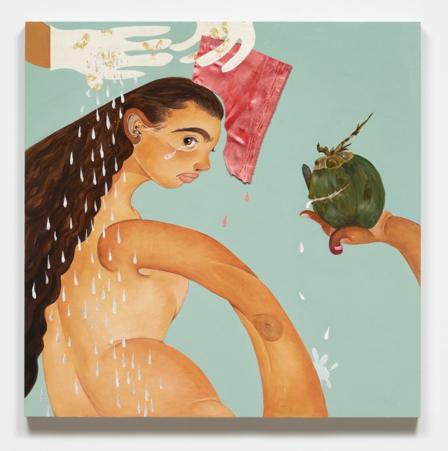 Images: 1- Bony Ramirez, Agua De Coco Para La Esperanza, 2021 – Acrylique, crayon de couleur, pastel gras, feutre feuille d’or, tissu, papier peint et papier Bristol sur panneau de bois | Acrylic, colored pencil, oil pastel, gold leaf marker, fabric, wallpaper and Bristol paper on wood panel, 76 x 76 cm (30 x 30 ») / 2- Bony Ramirez, The Lost Fight / La Batalla Pérdida, 2021 – Acrylique, crayon de couleur, pastel gras, huile en bâton, papier peint et papier Bristol sur panneau de bois | Acrylic, colored pencil, oil pastel, oil bar, wallpaper and Bristol paper on wood panel, 122 x 91.5 cm (48 x 36 »)