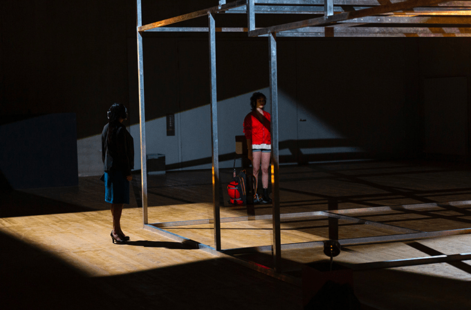 Une silhouette, un squelette, le fantôme d’une maison. Il en reste la forme globale, comme un dessin d’enfant. Ce sont d’ailleurs des voix d’enfants qui ouvrent la pièce, ceux que Marguerite Duras a interrogé dans les années soixante. Coiffés de nos casques de silent party, nous les entendons dire leur vérité, une vérité sans fard, puisque presque sans mémoire. Comment retrouver cette vérité si nue et si confiante?