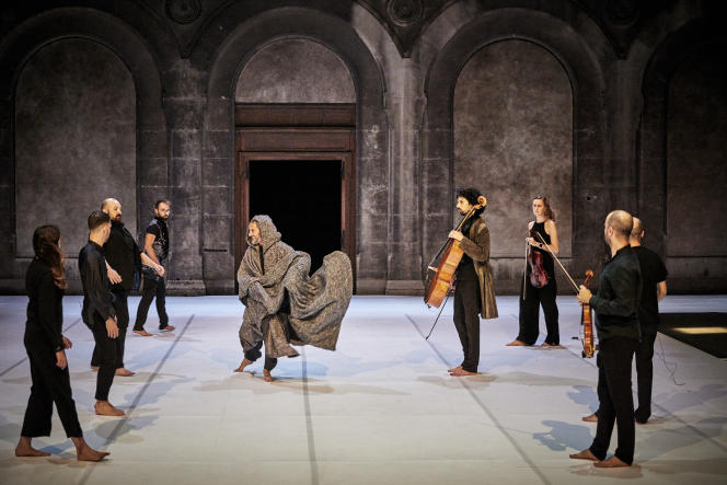 Le 77 festival d’Avignon touche à sa fin et on peut rapprocher certains spectacles, faire des familles avec les œuvres rassemblées, se raconter sa propre histoire à partir de cette première programmation de Tiago Rodrigues et il est assez cocasse de se dire que, au moment où Anne Teresa de Keersmaeker reprend En Atendant dans le Cloitre des Célestins, le festival a décidé de programmer Inventions de la compagnie espagnole Mal Pelo… Les points communs ? la musique baroque et la danse… mais là où Anne Teresa de Keersmaeker fait régner un calme janséniste, Maria Munos et Pep Ramis, les deux metteurs en scène de Mal Pelo, truffent leur spectacle d’effets, de bruits et cela provoque notre désolation…