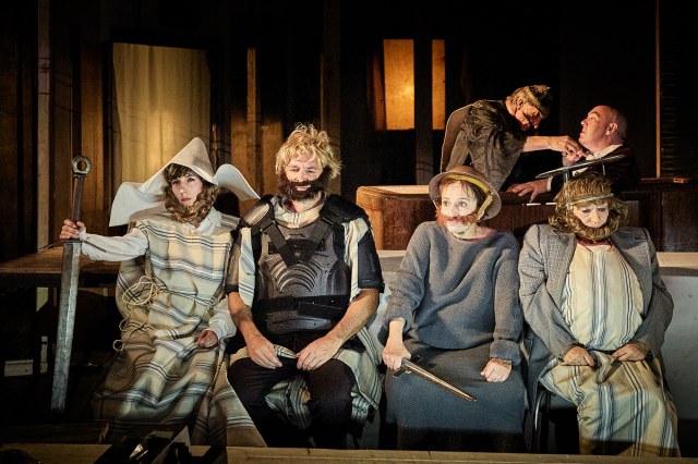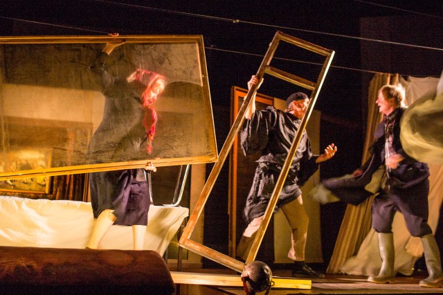 Il y a dans ce spectacle d’indéniables très belles images d’une sublime poésie. Comment ne pas penser au Molière de Mnouchkine, quand le vent semble tout emporter sur son passage, décor et comédiens. D’un simple changement d’attitude et d’accessoire, le patron de café se retrouve chevalier et nous emmène dans un ailleurs avec lui. Tout ce beau monde joue à un saute-mouton littéraire et il faut savoir les suivre car il n’est pas donné à tous d’adhérer à ce type de proposition, soit on y parvient, soit on reste sur le bord de la route. Et dans ce cas le périple est long car François Tanguy dans sa mise en scène, dans son désir de théâtre non narratif, peut perdre un public qui a besoin de proposition plus tangible, plus écrite mais non moins poétique.