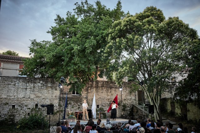 Comme chaque année, le Festival d’Avignon programme un spectacle en itinérance qui déambule dans la proche région d’Avignon dans les lieux les plus divers : salles des fêtes, cours de châteaux, site archéologique, arènes, etc.