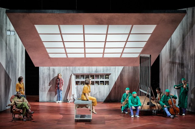 Ce type de spectacle laisse toujours un drôle de goût dans l’âme de qui les regarde, comme une plénitude incomplète avec laquelle il faut jongler pour ne pas tenter de tout comprendre mais juste se laisser porter. La composition de Florent Hubert et Antonin-Tri Hoang et le jeu des musiciens s’entremêle avec élégance avec chaque mot et chaque silence des comédiens sur scène. Une partition riche qui peut surprendre les moins habitués à ce type de musique contemporaine et composée comme une musique de film, directement au service de l’action, qui assène et porte l’action avec force. Les compositeurs font la part belle aux cuivres et aux percussions en créant une atmosphère mystérieuse et un peu anxiogène.