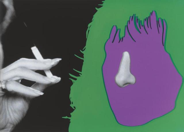 Images: John Baldessari, The Duress Series, Person Holding on to Pole Attached to Exterior of Tall Building © John Baldessari 2003. Courtesy Estate of John Baldessari © 2025; Courtesy John Baldessari Family Foundation; Sprüth Magers; Herbert Collection, Ghent / John Baldessari, Arms and legs (specif, elbows & knees),etc, part (one) : arm and leg (with column) © John Baldessari 2007,Courtesy Estate of John Baldessari © 2025; Courtesy John Baldessari Family Foundation; Sprüth Magers. Würth Collection, Künzelsau/ John Baldessari, Noses and Ears, (Part One) : Hand Holding Cigarette and Head (with Nose) © John Baldessari 2006. Courtesy Estate of John Baldessari © 2025; Courtesy John Baldessari Family Foundation; Sprüt