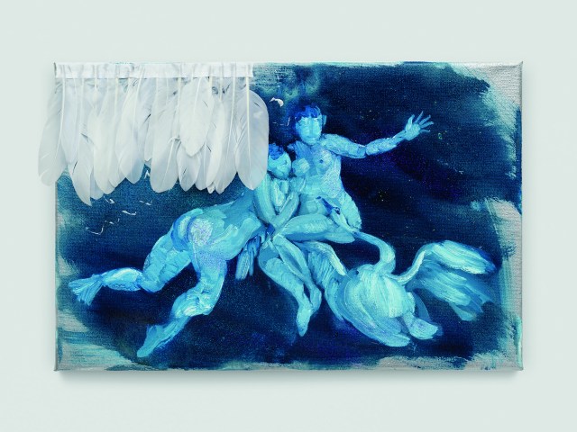 Images: 1- Klodin Erb (*1963), Orlando #175, 2019 – Oil on canvas, 60 x 50 cm – Courtesy of the artist and Galerie Urs Meile © Klodin Erb Photo: Stefan Altenburger Photography Zurich / 2- Klodin Erb (*1963), Orlando #167, 2020 Oil on canvas, 44 x 33 x 2 cm – Art Collection of the Canton of Zurich © Klodin Erb Photo: Stefan Altenburger Photography Zurich / 3- Klodin Erb (*1963), Venus in Fur, 2016 – Oil on canvas, 20 x 30 cm – Private Collection, Zurich © Klodin Erb – Photo: Stefan Altenburger Photography Zurich / 4- Klodin Erb (*1963), Leda and the Swan #19, 2024 – Spray paint, oil and glitter on canvas, goose feathers, 40 x 60 cm – By permission of the artist and Galerie Urs Meile © Klodin Erb – Photo: Stefan Altenburger Photography Zurich / 5- Klodin Erb (*1963), untitled, 2010 – Oil on canvas, 160 x 120 cm – UBS Art Collection © Klodin Erb – Photo: Lee Li | Photography Zurich