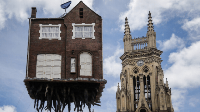 Images: 1 – Leandro Erlich, The Cloud, Photo: Tuomas Uusheimo / Amos Rex -2 – Leandro Erlich, El Avión (Airplane) Photo: Tuomas Uusheimo / Amos Rex -3 – Leandro Erlich, Classroom, Photo: Tuomas Uusheimo / Amos Rex -4 Leandro Erlich, Arrancada de raiz (La maison déracinée), Biennale d’Art de Bogota 2025 (Columbia), Photo DR