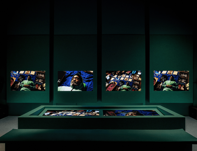 In these installations, bodies of water serve as connective tissue between the broad and complex geopolitical narratives he presents. Akomfrah reflects on memory and monumentality by layering archival material. Through theatrical stagings, the artwork becomes a kind of manifesto, inviting listening as a form of activism.