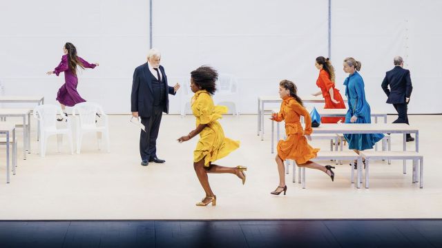 Une grande tente de réception occupe l’ensemble du plateau. Les murs de bâche accueillent tables et bancs, un environnement provisoire à la blancheur clinique. Les membres de la famille entrent et sortent, les hommes en costumes de cérémonie, les femmes vêtues de robes colorées. Dans un souci de réalisme accentué, chaque personnage a le prénom du comédien qui le joue. Et quels acteurs ! Jacques Weber joue un vieillard gâteux et irascible très crédible, Audrey Bonnet est bouleversante, ses face à face avec Stanislas Nordey, tout en tension, sont inoubliables. Quel délice que l’accent italien de Marilu Marini qui égrène ses souvenirs ! Tous sont à leur place, avec sincérité.