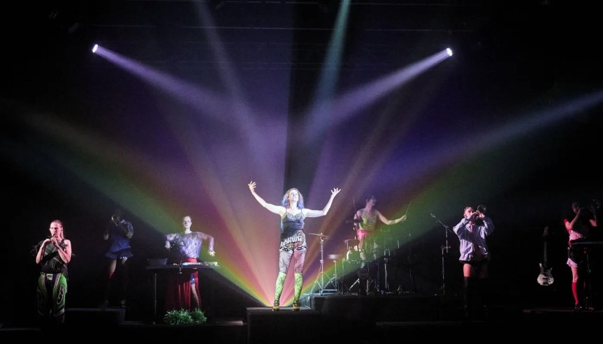 Le public qui n’est pas parvenu à se connecter à cette soirée transe est rassuré lorsque tout s’arrête et que Thomas Gonzales prend la parole, droit dans ses cuissardes, pour nous expliquer qu’il est naturel de ne pas tout saisir, car on ne peut pas tout comprendre au cours d’une vie, il suffit d’accepter ce que les choses sont. Le rituel reprend de manière plus intense, à l’exception du DJ qui se joint aux danseurs, le cérémonial demeure identique.