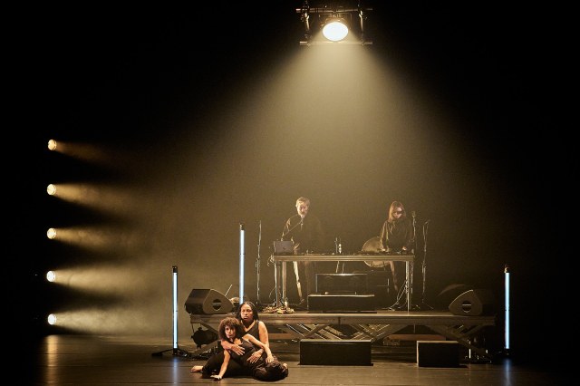 Surgissent les chants et la voix puissante de Lynn Abid qui, aidée de Abed Kobeissy, rentrent dans le cœur – et de saluer ici la traduction de Marianne Noujeim et Chadi Aoun centrale pour véhiculer l’émotion – la chanteuse prend place et le projecteur /soleil se lève et laisse découvrir une micro-scène comme dans May He rise and smell the fragrance mais ici, au lieu de trouver Ali Chahrour à genoux au bord de la scène, presque au même endroit, ce sont deux autres femmes qui sont entremêlées comme des mendiantes, prostrées, enchevêtrées… « Oh mon peuple, ne me blâmez point » dit le chant.