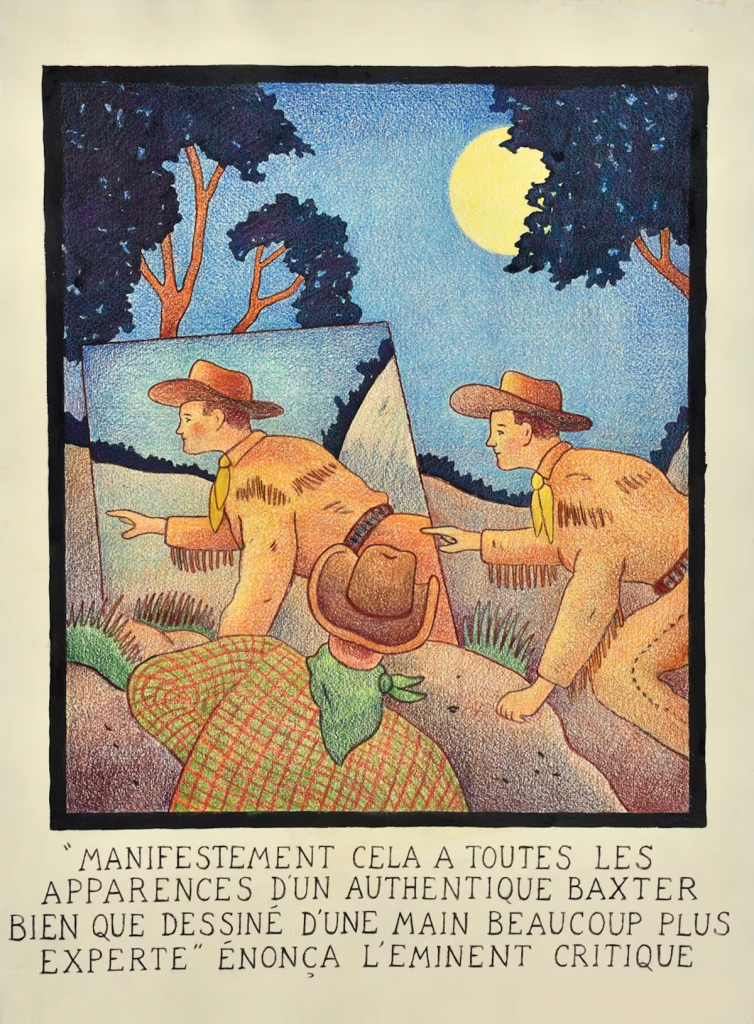 Le dessinateur britannique Glen Baxter, un farfelu absolu qui aimait les cow-boys et les références appuyées aux comics et au cinéma américain des fifties est décédé à l’âge de 82 ans, après une belle vie d’artiste singulier à l’humour très british et à l’imagination débordante.