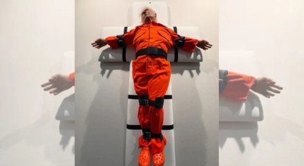 SAINT OR SINNER (Saint ou pêcheur) de Mason Storm – sculpture en résine époxy, novembre 2025, Bâle. L’artiste anglais expose depuis le 3 novembre dernier à Bâle cette sculpture représentant Donald Trump crucifié, en combinaison orange de Guantanamo, attaché à une croix par des sangles de contention. Une sculpture provocatrice de Mason Storm qui n’est … Lire la suite