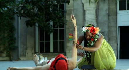 FESTIVAL D’AVIGNON 2018 : Sujet à vif A : « La Rose en céramique » par Scali Delpeyrat et Alexander Vantournhout – Sujet à Vif B : « L’invocation à la muse » par Caritia Abell et Vanasay Khamphommala. Photographies Audrey Scotto pour INFERNO « La Rose en céramique » « L’invocation à la muse« images Audrey Scotto – copyright INFERNO 2018