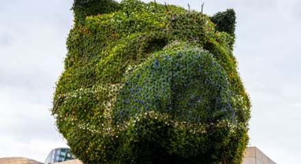 BILBAO : L’ICONIQUE « PUPPY » DE JEFF KOONS INSTALLE DEVANT LE GUGGENHEIM PORTE DESORMAIS UN MASQUE FACIAL