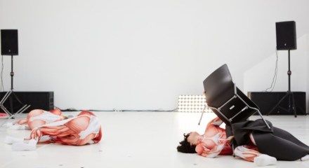 From A to B via C, au Centre Pompidou, en écho à la manifestation Performance Process du Centre culturel suisse de Paris, du 23 au 24 octobre 2015. Trois danseurs en justaucorps couleur chair et gros pull rose sont assis sur des chaises, à nous regarder nous installer dans la salle. Un dispositif vidéo, avec … Lire la suite
