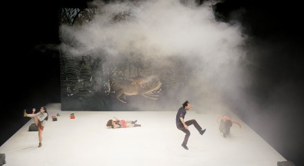 Matija Ferlin, The Other at the Same Time / Festival Actoral à Marseille / 27-28 septembre 2013 Ils sont cinq à sortir du fond de scène – une reproduction de Le lion, ayant faim, se jette sur l’antilope, la dévore, tableau faussement naïf du Douanier Rousseau. Ils sont cinq à quitter la civilisation de l’argent et de la productivité, où le fort mange le faible. Ils sont cinq à partir vers des terrains inconnus, … Lire la suite