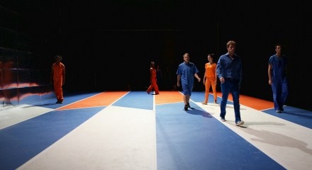 Polices ! Rachid Ouramdane / au Théâtre de la Ville, du 1er au 3 avril 2015. Des marques bleues et orange sur le sol. Le même bleu et le même orange que les costumes que portent les interprètes de la pièce – professionnels, habitants et enfants choristes – et qui les divisent en deux groupes … Lire la suite
